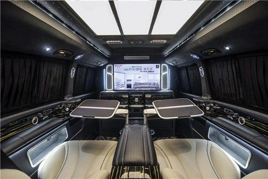 奔驰威霆Vito改装7座无高顶隔断戴山青版改装车奔驰威霆房车车舱顶部配灯光。座椅呈2-2-3型排列,整洁美观,真皮制作,柔软舒适,中排电动加热按摩,可多方位调节,后排可电动成床,推崇精品座驾。空气净化系统,奔驰威霆Vito改装7座天使版改装车自动恒温空调附花粉过滤系统,给您一个舒适的乘坐空间。车舱内座椅全部采用真皮制作,每一个合缝处的处理十分的细致,充分体现出了德国人的严谨,也符合商务人士的性格。