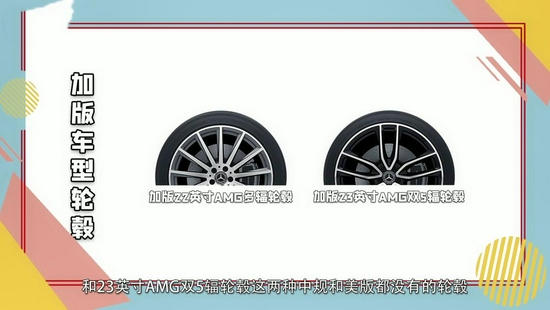 也就是说,除了选装了运动包的加版车型(外观上与中规豪华型一致,只多了黄色反光片),其他版本都能通过轮毂和AMG外观运动组件来判断车型的国家版本。