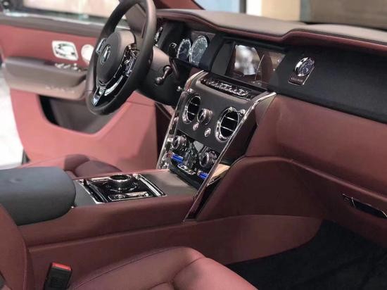 劳斯莱斯库里南内饰大量实木饰板的采用,提升了内饰的档次感。而大面积真皮包裹的设计,则成功的营造出奢华舒适的内饰氛围。仪表盘的设计较为古朴,内部指针清晰可见,外圈还配备有劳斯莱斯珠宝般的装饰环。方向盘沿用了经典的三辐式造型,但是整体设计更加小巧、厚实,并且内部包裹有可加热的柔软材质。