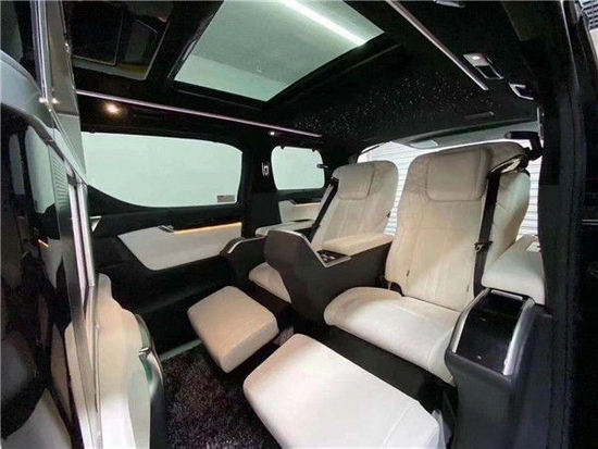关于内饰设计,LM系列的内饰也保持雷克萨斯一贯霸气高贵,同时在设计风格上进一步大胆突破。提供黑色和黑白双色两种内饰配色。根据不同的功能需求,也可选用双排4座隔断式和三排7座隔断式两种版本,其中7座版本采用传统的2+2+3式布局。