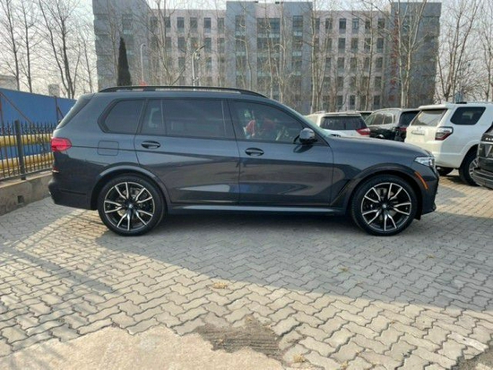 21款宝马X7 (配置|询价)依旧采用了大量宝马家族化设计元素,整体造型延续了此前概念车的设计。进气格栅相比宝马现款车型尺寸更大,两侧大灯也采用了开眼角设计,使前脸造型更加狭长,搭配内部的日间行车灯,有着较强的科技感和灵动感。