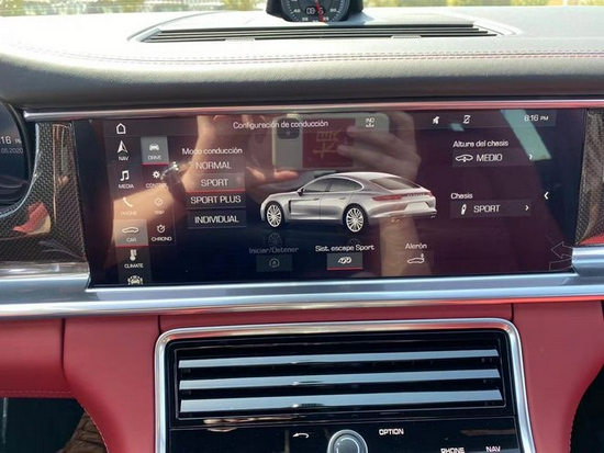 20款保时捷帕纳梅拉4S五环式仪表盘,具有液晶显示屏的行车电脑显示功能,超大液晶显示屏配有倒车雷达模拟图像。还有可以在每个弹簧中按需提供额外充气量的气动悬挂系统,可自动升起且角度可调的后扰流板,确保了主动空气动力学性能。另外,新一代PCM保时捷通讯管理系统在中控台上整合了尺寸更大的液晶屏幕。传统位于中控台的空调系统与警示灯等按钮,都转移至排档座区块。众多控制按钮以深色底板辅以细条镀铬的对称排列设计成为保时捷中控台造型的一大突破。