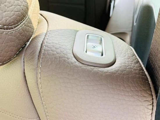 来到车内,奔驰的用料不用怀疑,对得起豪华品牌的工艺和材质,大面积的真皮覆盖,手能触摸到的地方几乎都是软性材质和真皮包裹。缝线工艺的真皮仪表台对整个内饰的豪华度提升非凡,这台车搭配的银色塑料面板,高配车型的实木花纹面板会让整车显得更加沉稳。