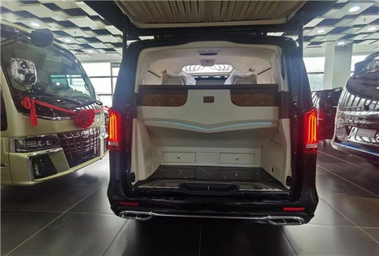 奔驰v (配置|询价)260L商务车改装四座版改装隐藏六座动力配置:发动机:M274 L型4缸涡轮增压、排量:汽油/2.0T、功率(千瓦(马力)/转速):155KW211PS/5500、扭矩(牛米/转速):350/1250-4000、变速箱:9档 手自一体、驱动形式:前置后驱、外形尺寸(毫米): 5375*1928*1920、轴距(毫米):3430MM、平均综合油耗(升/100公里):9.1L、油箱容积( L ):75L、国六排放标准。
