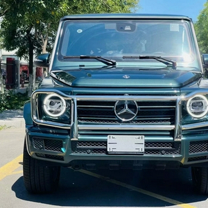 21款奔驰G550是一部纯粹的全地形越野车,粗犷的外观,标志性的三肋镀铬格栅,大大的奔驰车标非常醒目,硬朗笔直的车身线条完全是硬派越野的风格,车头圆形前大灯设计很复古,平直的线条贯穿全身。