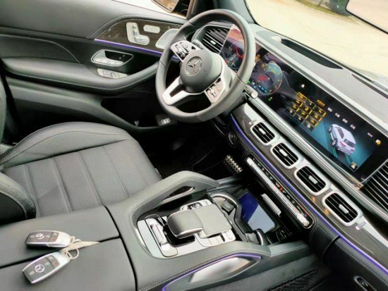 21款奔驰GLS580内饰可选高等真皮以及实木-真皮组合,囊括桉木内饰、纵纹轻铝制内饰以及棕色岑木内饰板,并带有三种色彩及亮度调理的情况空气照明系统,尽显高级。