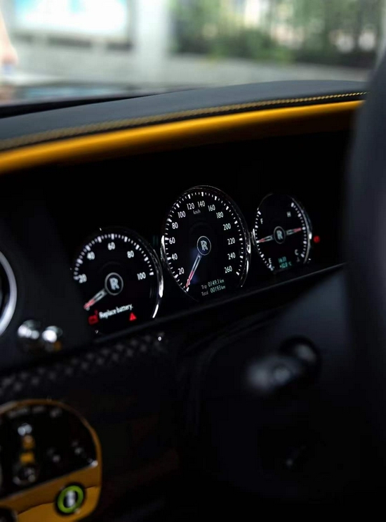 劳斯莱斯库里南大面积真皮包裹的设计,则成功的营造出奢华舒适的内饰氛围。仪表盘的设计较为古朴,内部指针清晰可见,外圈还配备有劳斯莱斯珠宝般的装饰环。方向盘沿用了经典的三辐式造型,但是整体设计更加小巧、厚实,并且内部包裹有可加热的柔软材质