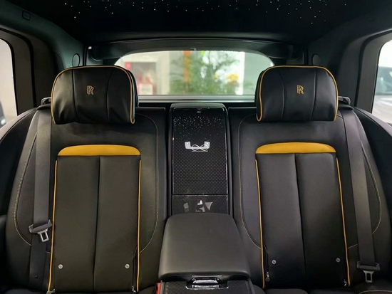 劳斯莱斯库里南将提供4座与5座版本,四座版本还可以个性化定制冰酒柜与小桌板等等,同时增加了宽大的中央独立扶手箱。值得一提的,库里南整个椅背由一张皮料打造而来,立体感十足,让我们不禁感叹劳斯莱斯的皮具工艺并不亚于巴黎的那些专业皮具奢侈品。
