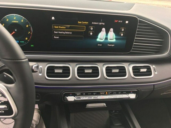 21款加版奔驰GLE450 内饰则延续了现款S级 (配置|询价)的造型,用的是贯穿式中控台双屏设计,12.3英寸的双液晶显示屏带来的科技感爆强,并且搭载了奔驰最新的MBUX人机交互系统,采用搪塑,皮革,实木,金属和碳纤维材质,三幅式底方向盘动感十足,头顶一个全景天窗,座椅用的是双色搭配的运动风格座椅,舒适性和包裹性也比较好。