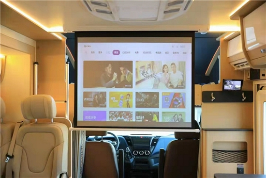 浅色内饰及顶部氛围灯则营造了温馨的家庭氛围。车内还配有进口DVD及音响等设备。