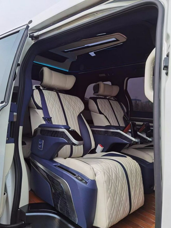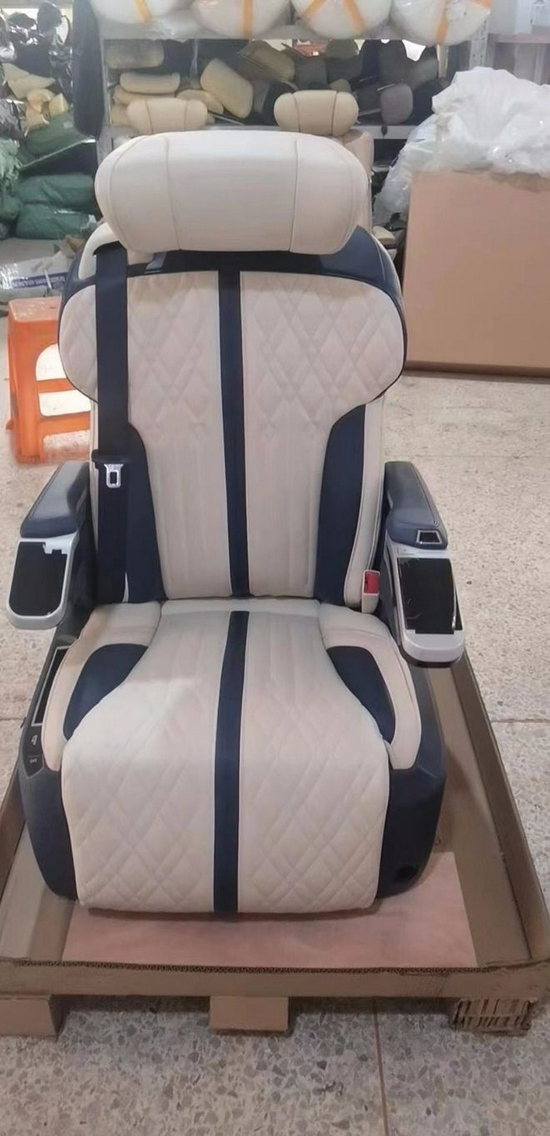 奔驰威霆改装航空座椅后中排舒适度大幅度提升,后排改装沙发床可放倒放平当床用,本公司生产的奔驰威霆专用座椅具有3C认证,安全度高、座椅功能齐全、按摩、加热、通风、电动腿托、前后移动、靠背放平、手机充电、氛围灯、旋转、座椅记忆调节、一键复位等实用功能。奔驰威霆专用后排座椅可以放平当床,可独立体调节也可以整体调节角度。