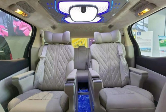 中排航空头等仓座椅舒适性MAX,通风加热按摩旋转应有尽有。顶部采用麂皮绒包覆加星空顶设计,加上车内大量氛围灯的点缀,车内氛围非常舒适。地板使用的是亚克力高光镜面地板,非常漂亮而且有着易打理的特点。