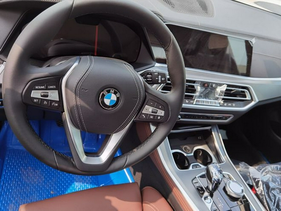 宝马X5中控台的设计简练而大气,配以上等桃木装饰,精良的装饰和装修,高质量的材料和构思巧妙的设计结合在一起,创造出另一种非常舒适、非常实用和非常悦人耳目的内室,真皮方向盘简单利落手感相当不错。