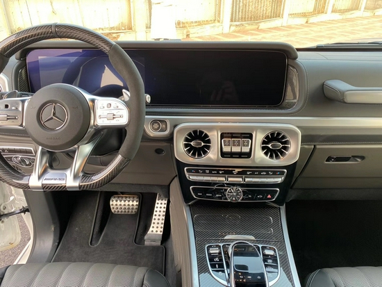 奔驰G63采用了奔驰最新的双屏幕式设计,全液晶仪表盘和中控台屏幕都达到12.3英寸。同时内饰质感和工艺都有了很大的进步。较之于现款车型,它的内饰发生了巨大的变化,融入了不少现款奔驰S级 (配置|询价)、E级的设计元素,从而变得更加豪华,而家族式的连屏设计则凸显了车内的科技感。当然了,经典的“三把锁”按键自然不会缺失,并且设置在中控台最为显眼的位置。