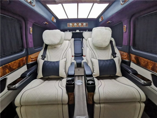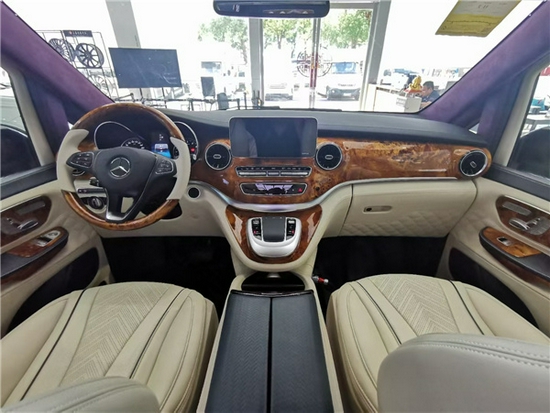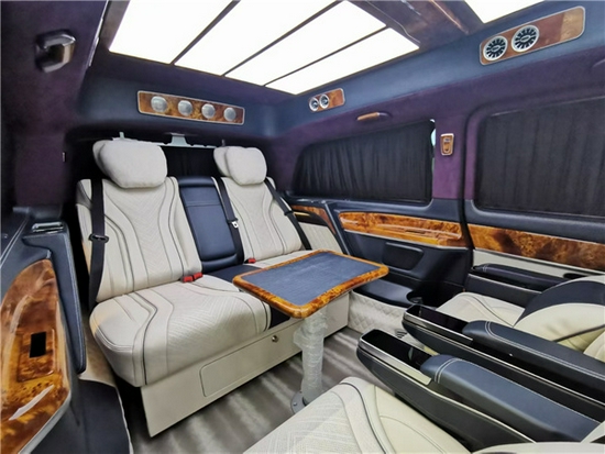 这期我们介绍一款奔驰v (配置|询价)260加长版所升级改造的高顶系列的商务车。奔驰的v级系列,其本身的安全系数在整个奔驰系列中都属于上乘,其带有主动刹车系统,360环影以及奔驰的人机交互系统,都为日常的出行提供了安全保障。新款的V级加装的四轮空气悬挂,使其作为商务车的舒适度,有了更大的提升。外观升级了巴赫的全新定制外观,直瀑式的中网黑白相间,层次分明,两侧的日间行车灯,更加点缀了这款车的豪华气质。