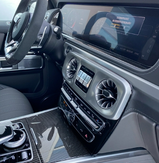 21款奔驰G63档次、质感和科技配置都明显提升全新奔驰G级 (配置|询价)的内饰相比老款有了明显的提升,采用了奔驰最新的双屏幕式设计,全液晶仪表盘和中控台屏幕都达到12.3英寸。同时内饰质感和工艺都有了很大的进步。经典的“三把锁”按键自然不会缺失,并且设置在中控台最为显眼的位置。