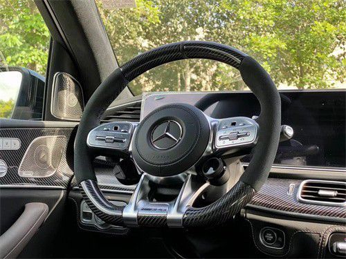 21款奔驰GLS63内饰设计非常豪华,AMG家族专属的镀铬金属方向盘质感不俗,双联屏的设计凸显了科技感,下部的四孔式出风口代表了GLS旗舰的地位,大量的真皮和碳纤维进行装饰,营造出浓郁的运动科技感。