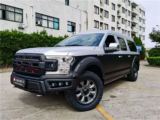这款车以美国进口福特F150 (配置|询价)为基础,精工打造,通过后尾箱与车体的连接,形成与车身稳固的一体式车厢,同时在原有五座的基础上,加装第三排真皮座椅,合理利用尾箱空间,VX:YH_ZF-2020——1 3 3 2 1 9 5 6 6 7 9将其打造成为一个大型豪华舒适的7座型SUV。