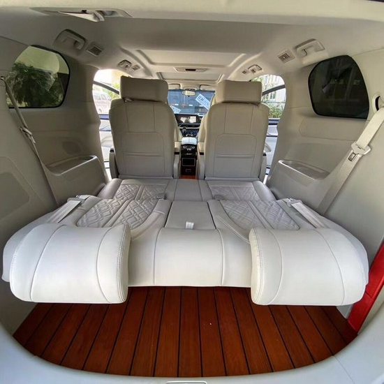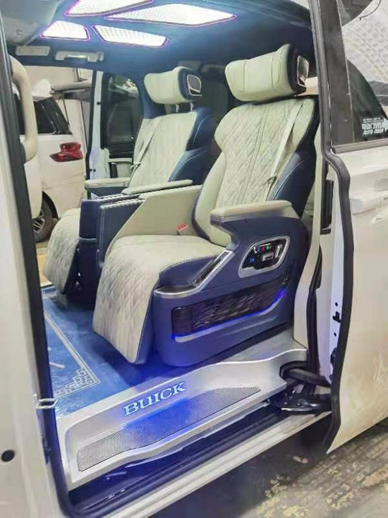 别克GL8改装航空座椅后中排舒适度大幅度提升,后排改装沙发床可放倒放平当床用,本公司生产的GL8专用座椅具有3C认证,安全度高、座椅功能齐全、按摩、加热、通风、电动腿托、前后移动、靠背放平、手机充电、氛围灯、旋转、座椅记忆调节、一键复位等实用功能。GL8专用后排座椅可以放平当床,可独立体调节也可以整体调节角度。