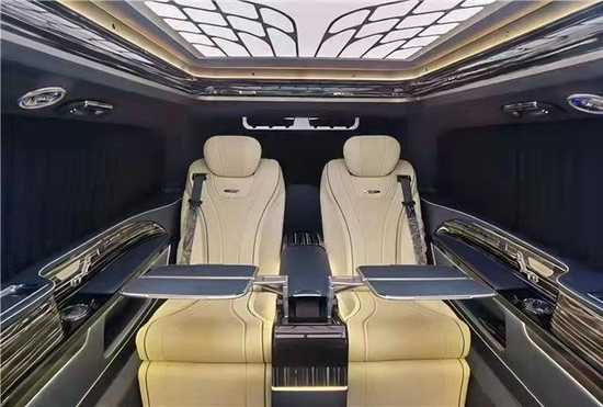 全新奔驰威霆 (配置|询价)改装高顶巴赫VS980定制版;外观方面采用迈巴赫特有包围,直瀑式的进气格栅搭配镀铬装饰的大前唇,使整车前脸更加大气稳重;盾型高顶设计,流线型车身,使得外观更加美观,整车尺寸(长*宽*高):5370*1920*2080;动力方面依然搭载的是我们2.0T高功率汽油发动机,九速手自一体变速箱,像比于老款底盘,其操作方面更加顺畅,动力强劲。