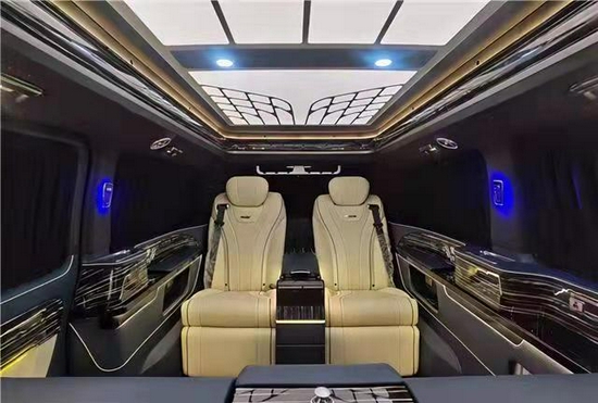 奔驰威霆总裁版隔断吧台内含两张隐藏座椅,以及隐藏式的电动酒柜,都可一键电动收放;中间还配备有电动隐藏式多功能桌板。车舱两张航空座椅具有十二项电动调节,可通风、加热、按摩、仰卧、移动以及脚托升降等。在车内与重要客户进行商务谈判时,成功促进合作,不妨开启隐藏酒柜,与之小酌几杯美酒,岂不快哉。对此不禁感叹这款奢华四座MPV给您带来的无限遐想。