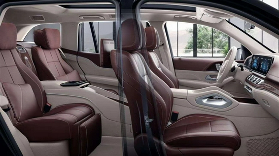2021款奔驰迈巴赫GLS600加长新车提供四座和五座两种布局,其中四座车型第二排独立座椅相比普通版GLS更加靠后,并且带有巨大的腿拖,其后排座椅最大倾斜角度大43.5度,后排腿部空间最大达1.34米。中央由冰箱、控制台、储物空间和手机无线充电台等进行贯穿呈现出类似于迈巴赫S级 (配置|询价)一样的头等舱设计空间方面,迈巴赫GLS采用了四座布局,其中第二排独立座椅相比普通版GLS更为靠后,同时还带有巨大的腿拖,而中央部分则是由控制台、
