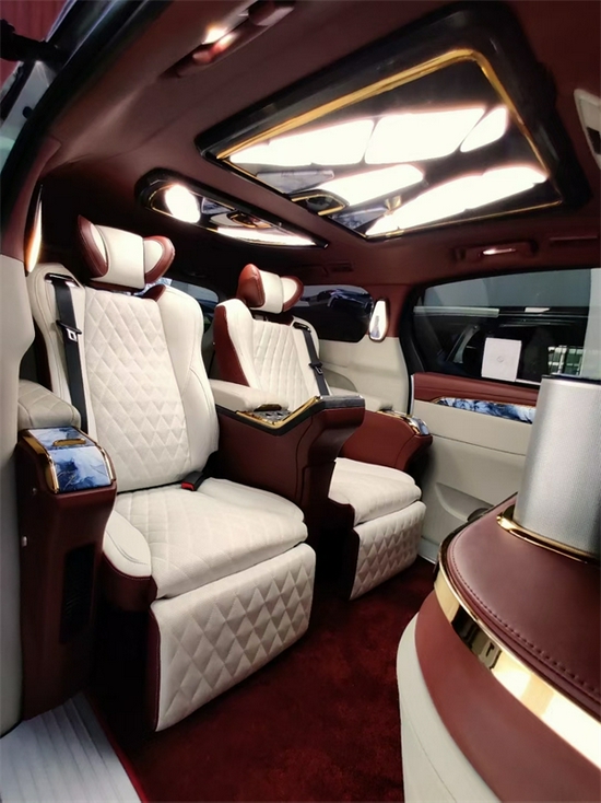 全车铺设进口麂皮绒羊毛地毯,2.1米长板,后方无台阶,纯手工固装工艺,更加扎实可靠、坚固耐用。为了减震隔音,在地板的下方铺设大能蓝金刚减震材料。更换不锈钢全包带灯的门槛踏板,很多人认为不锈钢门槛踏板质量一样,其实不然,厚度硬度只有亲自感受过才知道好坏。
