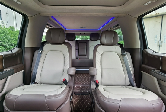 2021款 F-150福特勇猛者平顶2.1米的宽度,3.7米的轴距让它对比同级竞品成了难得一见的“庞然大物”然而高顶与平顶车型之间却存在着约16厘米的高度差,这直接决定了两车内部空间感不同给人带来的驾乘体验也不尽相同:高顶侧重内饰氛围,平顶则更讲究原汁原味的操控。整体气质差异款F-150福特勇猛者高顶主打商务接待,因此外观看起来较为夯实沉稳,整体气质与奔驰V (配置|询价)MPV车型相仿;而平顶主攻自驾,