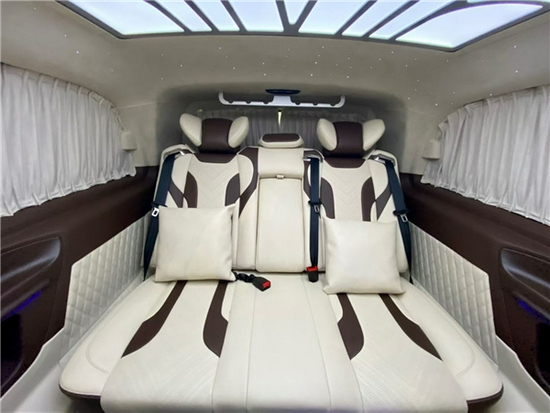 奔驰威霆舒适的驾乘体验还体现在第三排座椅的改装上,让您在旅途亦能享受以人机工程学打造的应需而变得舒适旅程。奔驰威霆第三排座椅可前后电动调节,椅背整体可倾斜180°,实现躺卧姿势。采用皮质包覆的宽大中央扶手可以提升用户的使用便利性。