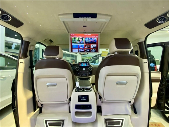 地板贴心的铺设着四季都实用的透明环保地膜,当你登上镀铬的脚踏板走进乘客舱的那一刻,这一切都是最尊贵的接待出行等级。 想要拥有既实用又舒适的待遇,或许埃尔法给不了你的,奔驰威霆却能够给你。