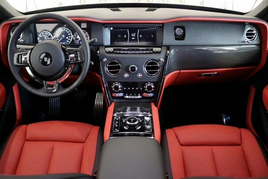 劳斯莱斯库里南Black Badge版内饰延续了全新幻影 (配置|询价)的设计风格,整体用料依旧一如既往的奢华高贵,中控采用大面积实木打造,配合方向盘上的实木点缀,既复古又豪华。中控屏幕尺寸为10.2英寸的屏幕,轻触车门把手上按键就可以电动关闭。游艇式方向盘采用了相同的搭配风格,全液晶仪表盘采用三圆仪表设计,辅以虚拟表盘和指针,兼具现代化的科技感和典雅的复古风格。
