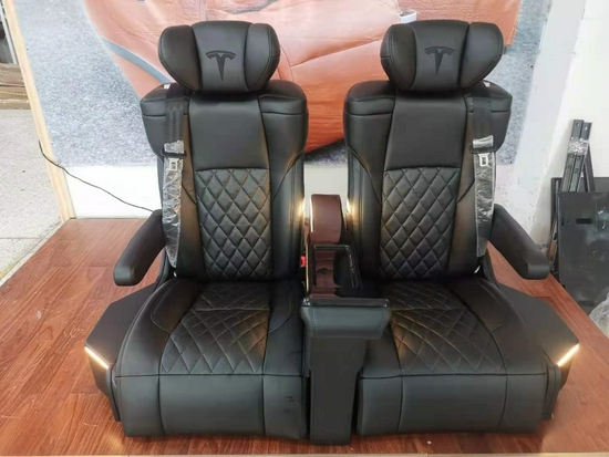 特斯拉Y座椅改装升级航空座椅,特斯拉Y改装航空座椅商务座具备按摩、加热、通风、电动前后、电动靠背调节、电动腿托、手机充电、触屏控制等强大功能