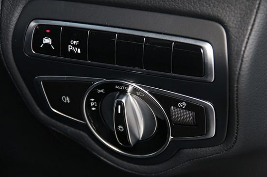 灯光系统的操作区域,上方的按钮中可以看到这辆奔驰G350d还拥有车道保持系统。