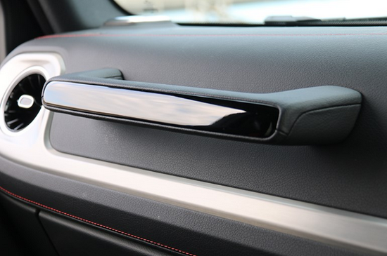 副驾驶前方的扶手,给车内的豪华氛围增加一份野性的味道。