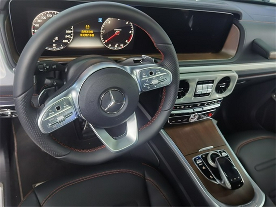 21款奔驰G350柴油内饰方面豪华气息浓厚,仪表盘采用双炮筒式设计,再配合中间的液晶显示屏,粗犷之中又不失精致,宽广的空间, 让人瞬间有一种自由奔放的感觉, 大量的真皮设计以及一些恰到好处的点缀材质,尽显高贵奢华。中控仪表的设计又很有科技感。