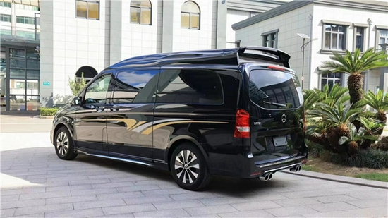 首先外观方面,改掉了原本的进气格栅,换成了跟V级同款锋利式的进气格栅,黑体实心的车标更显尊贵感。下方是左右贯穿的镀铬件以及雾灯,加上后期加装的高顶设计,整体线条更加饱满流畅,车内的空间感也更加好。