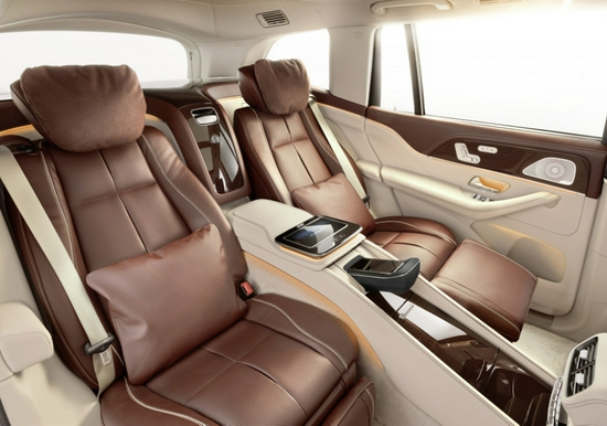 迈巴赫GLS标配后排两个座位,第三个是可选的,尽管只有外侧两个座位可倾斜。所有四个座位均经过加热和冷却,并配有按摩器。没有第三个座位,固定的中控台与前排的一个相连。这个扩展的控制台拥有自己的选项列表,包括折叠桌,冰箱以及用于存放香槟酒瓶和长笛的空间。杯托的前部和后部都经过加热和冷却,第二排有自己的7英寸 板电脑,可用于某些控件。最后,香水分配器可确保机舱始终散发新鲜香气。您将需要所有这些奢侈品来庆祝所有成功的业务交易,从而帮助您支付豪华的旅程。
