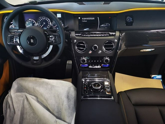 2021款劳斯莱斯库里南内饰基本与幻影 (配置|询价)别无二致,中控台的设计很高,非常考究的用料设计,现代科技与复古奢华相结合,也许就是这台车的无限魅力吧!方向盘的设计真的非常普通,但是这个方向盘上所集成的功能一点都不少。三盘式设计的仪表,信息显示不算很多。内部按键都是采用镀铬处理,并搭配豪华皮革及高级木材,给车主最豪华的内饰,同时劳斯莱斯还给你留下极大地选装余地,给车主一台属于自己别一无二的库里南。