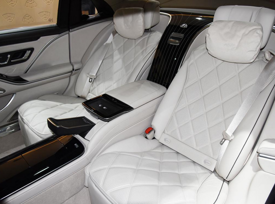 尺寸方面,迈巴赫S580 4MATIC长宽高为:5470/1921/1510mm,轴距为3396mm,定位大型车范畴。现场展车是四座版本,后排配备有中央扶手、多媒体大屏、腿托等设计。当副驾驶位通过按钮放倒以后,右后方的乘客伸直双腿都没有问题。