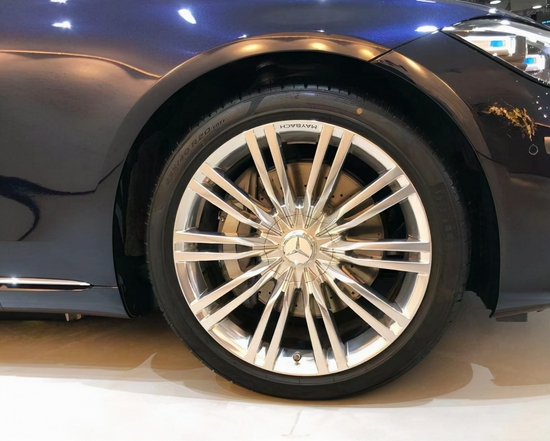 侧面部分是优雅修长的造型,车头要比尾部长很多,形成了一种拉伸的效果,通过银色饰条包边的车长和门板加持,营造出了非常商务豪华的气质。C柱部分配备的双M LOGO,则彰显了该车迈巴赫的身段。当然熟悉的双色车身没有出现,算是一个不小的遗憾。配置上,迈巴赫S580 4MATIC是搭载了255/40 R20的多辐式轮圈,少了些许商务气息,多了一些运动气质。