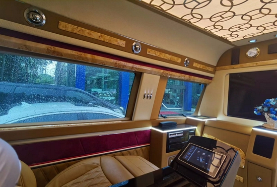 一般改装项目清单(包括但不限于):航空座椅、三连座沙发、柚木地板、全隔断、带升降电视、半隔断吧台、吧台隐藏座椅桃木方向盘、方向真皮包、覆仪表台真皮包覆、驾驶座真皮包覆、驾驶座电动调节、驾驶座电动加热、驾驶座电动通风、驾驶座电动按摩、驾驶座气动按摩、驾驶座加棉、驾驶舱鹿皮顶、后舱鹿皮顶、后舱星空顶、九宫格顶灯、ABCD柱鹿皮包覆、遮阳板鹿皮包覆、驾驶位门板真皮包覆、中门门板真皮包覆、后尾门门板真皮包覆、全车侧壁真皮包覆、全车私密手动窗帘、迎宾踏板、主副驾驶中央扶手箱、主副驾驶扶手带冰箱、吸顶电视、主副驾驶靠背小桌板、可拆卸小桌板车、内氛围灯、吊顶、等其他项目。