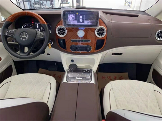 多功能方向盘、仪表盘、中控部分采用与奔驰V (配置|询价)260L相同的设计,座椅的设计全部采用真皮包裹,可以缓解疲劳,增强驾驶感。米色与橡木的装饰看起来更加年起大气,给人的感觉很洒脱舒适。
