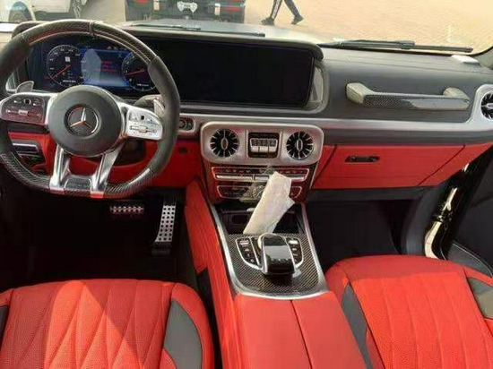 2021款奔驰G63AMG豪华精致的真皮包覆提供了足够的舒适性和支撑性,通风和加热功能让乘客免受高温和寒冷的煎熬。中控台多处均采用碳纤维材料覆盖, 带彩色TFT显示屏的AMG仪表盘、AMG主菜单和单独的挡位显示器以及采用白色照明的AMG门槛。