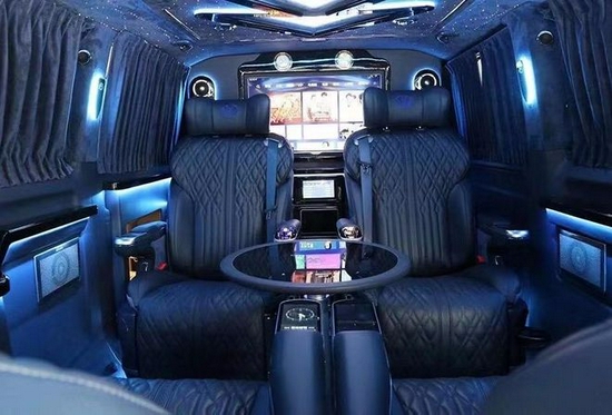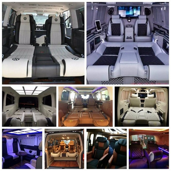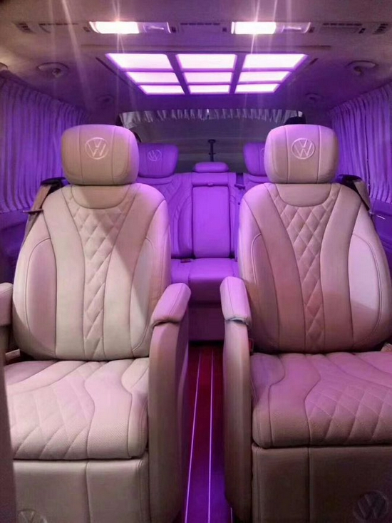 大众凯路威、大众迈特威、进口大众T6商务车系列改装内饰地板、座椅顶灯等项目专业改装、品质一流。进口大众T6全车采用真皮包覆,缝线细腻,柚木地板覆盖,处处体现了匠心之处。顶部搭载可调节的氛围灯、壁灯等,时尚的温馨感,与空调的造型排列,很有层次感。驾驶舱中间人性化的设计了冰箱。