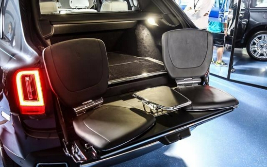 类似于轿车的尾部设计使劳斯莱斯可以在细节上发挥更多,这也是对生活方式的最终诠释。它提供了可选的座位选择。通过按下车内的按钮,两个皮革座椅和一个鸡尾酒桌将从行李箱的隐藏隔间中升起,使用户在户外活动中拥有不同的体验。