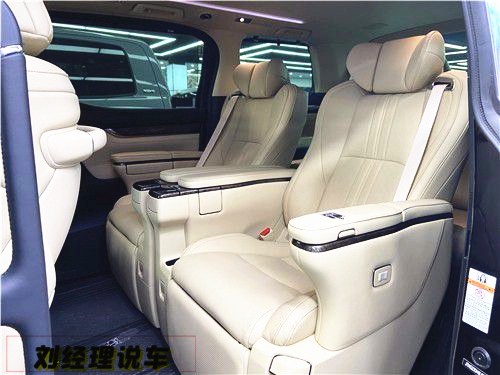 内饰:豪华是第一要义,内部双擎版和燃油版保持一致,内部采用2+2+3的座椅布局方式,当然最重要的是第二排的老板座椅,拥有多种电动可调角度,埃尔法双擎只有两个版本,分别是豪华版和尊贵版,豪华版座椅使用的是真皮+合成皮,而尊贵版座椅使用的是Nappa真皮+合成皮,并且只有尊贵版才有第二排Ottoman宽适旗舰座椅,其拥有电动腰托、可调头枕、可倾倒功能,并且还有座椅通风加热、座椅记忆功能。
