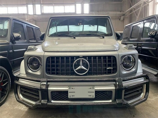 21款奔驰G63 (配置|询价)外观造型上与奔驰系列产品差异化最明显的地方,其中AMG系列的直瀑式格栅在新时代下的鼻祖可以说是AMG 车型,它内部由12根竖置镀铬饰条组成,同时新车的保险杠进气口相比G500造型也更具有攻击性。