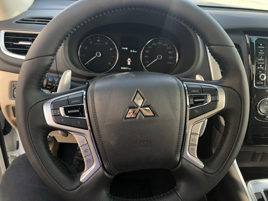 19款帕杰罗·劲畅 •运动版 3.0V6 超选四驱 8速、七座、天窗、进口SUV、非承载式车身(大梁)、18铝轮,EBD+动态稳定,自动空调,真皮多功能方向盘,方向盘换档拨片,陡坡辅助,电动折叠镀铬后视镜,后四雷达、无钥匙进入无钥匙启动系统,航空踏板,后排双USB接口,透镜大灯、雾灯、手动带腰部支撑、电子手刹、中控屏、彩色仪表、6喇叭、中控黑钢琴面版。国五环保。