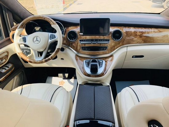 奔驰V260L改装圣母峰七座现车特价销售。奔驰V260【圣母峰凯旋版】直瀑式进气格栅配合飞翼式大灯使得整车气场十足,还加装空气悬挂开到哪都是瞩目的焦点。整车尺寸5375mmX1928mmX1920mm,保证了更宽阔的车内空间,同时有着优良的动力和经济性,发动机采用汽油发动机,排量为2.0T,最大功率155kw,而最高车速200km/h,还有大的空间让您坐得舒服,同时七座设计,让您出游或是办公避免了多一两个人没处坐的尴尬时刻!