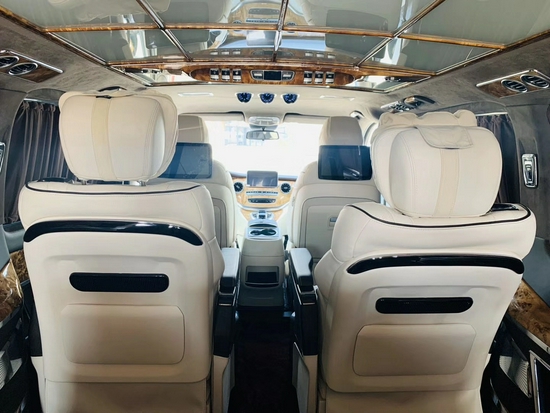 奔驰V级圣母峰-凯旋版全车采用了7座的设计,有无隔半隔可选,无隔前后排中间并没有配备液晶电视,而是被迈巴赫S级 (配置|询价)畅享隔断所分隔,并配备了12.3寸的双屏显示系统(其包括了5g互联系统,人机交互系统以及手势感应门控的功能)。奔驰V级圣母峰-凯旋版全舱所有座椅都采用了意大利头层的nappa牛皮包裹,第二排两张独立航空座椅集成了12项电动调节、座椅加热通风、座椅气压式按摩及腰部支撑。